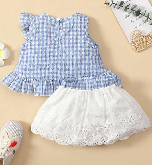 Ruffled Plaid Print Top and Lace Hem Skirt