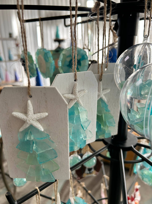 Plank Seaglass Tree Christmas Ornament/Gift Tag