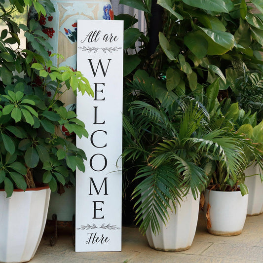 “All are WELCOME Here”Vertical Wood Porch Sign,47"H