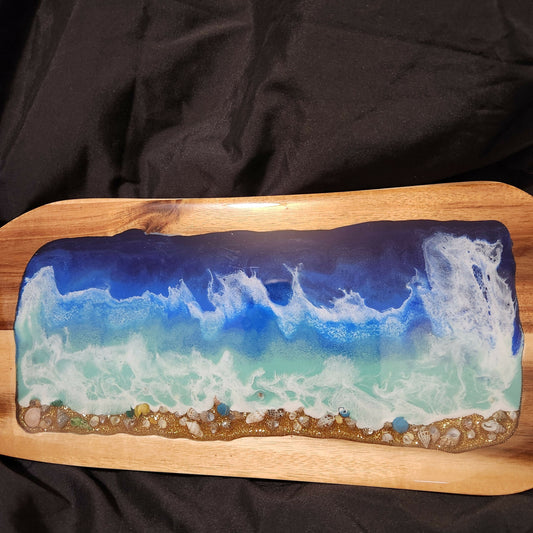 Teak Blue Waves with Handles 16 x 10