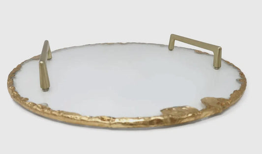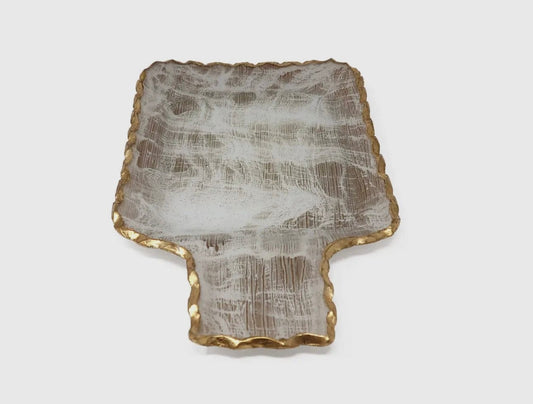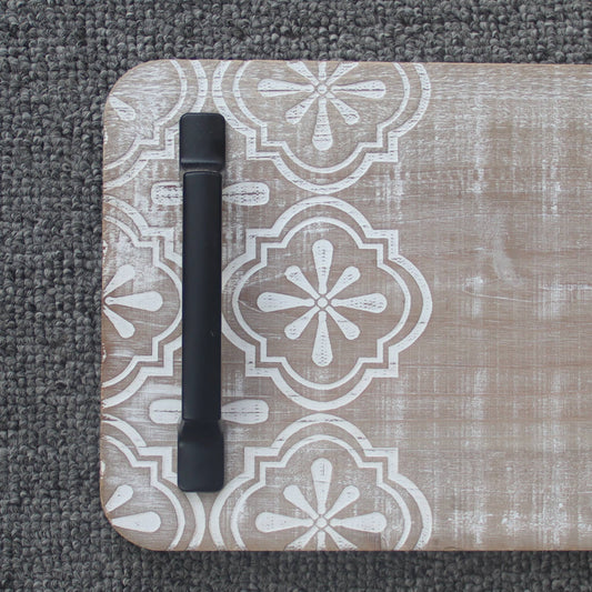 Rustic Solid Wooden Serving Tray with Metal Handle