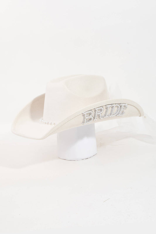 Pearl Rhinestone Stud Ribbon Bride Cowboy Hat