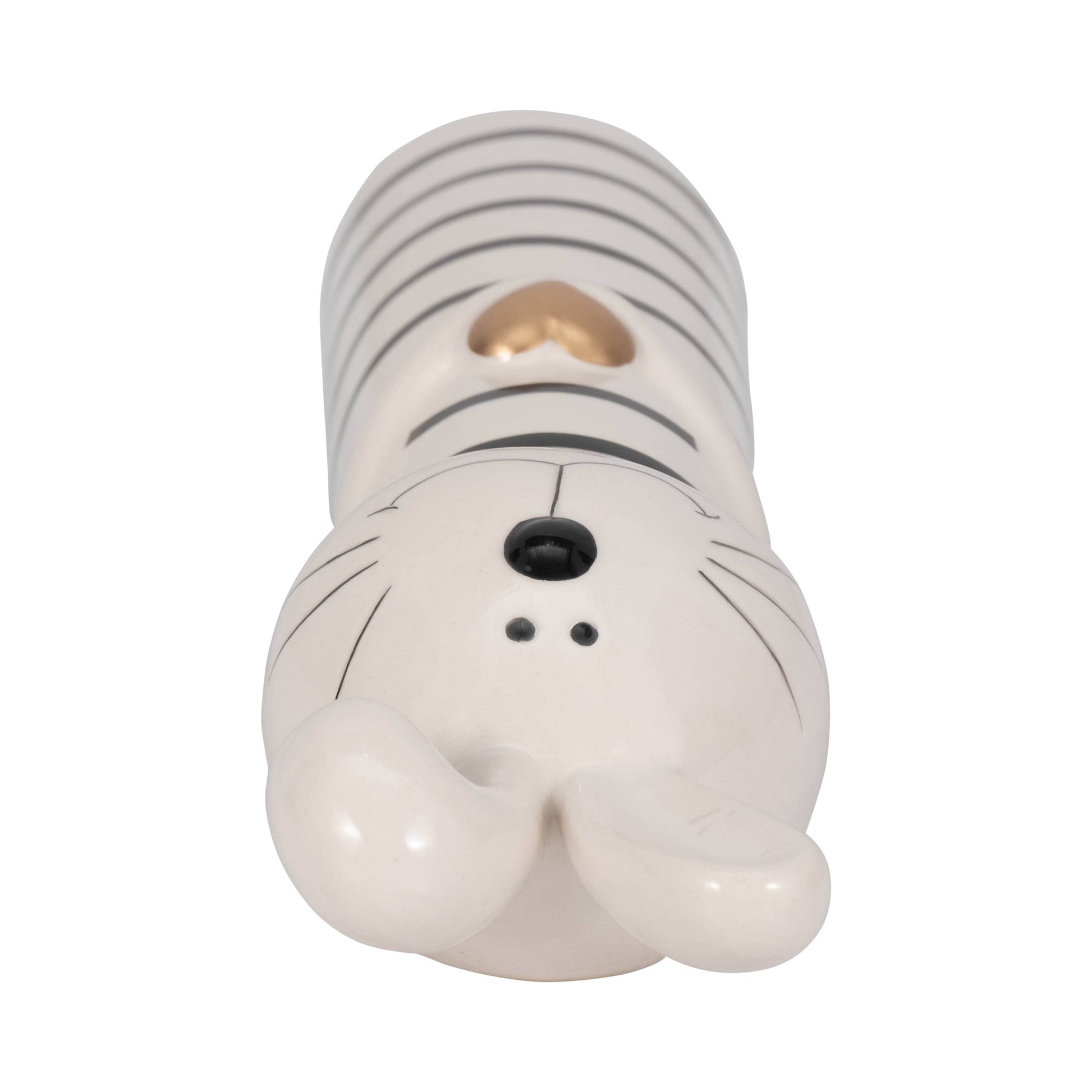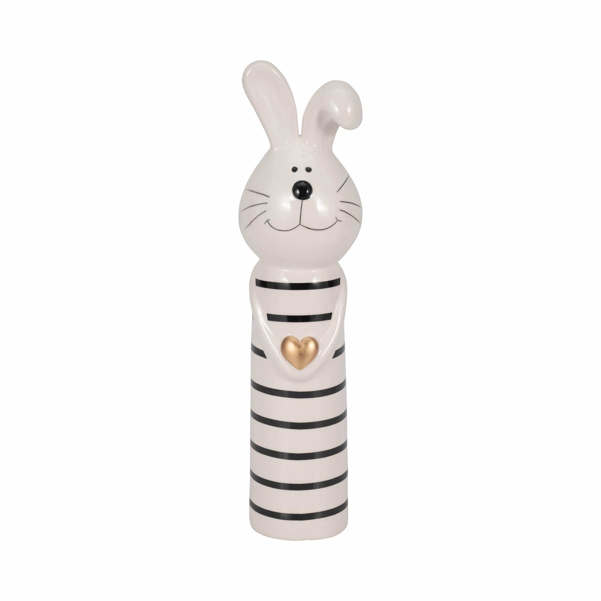 • ADORABLE BOHO-STYLE DESIGN - This charming ceramic figurine adds a playful yet elegant touch to any space. With its black and white striped pattern and gold heart detail, it blends effortlessly with modern, rustic, or eclectic decor styles.