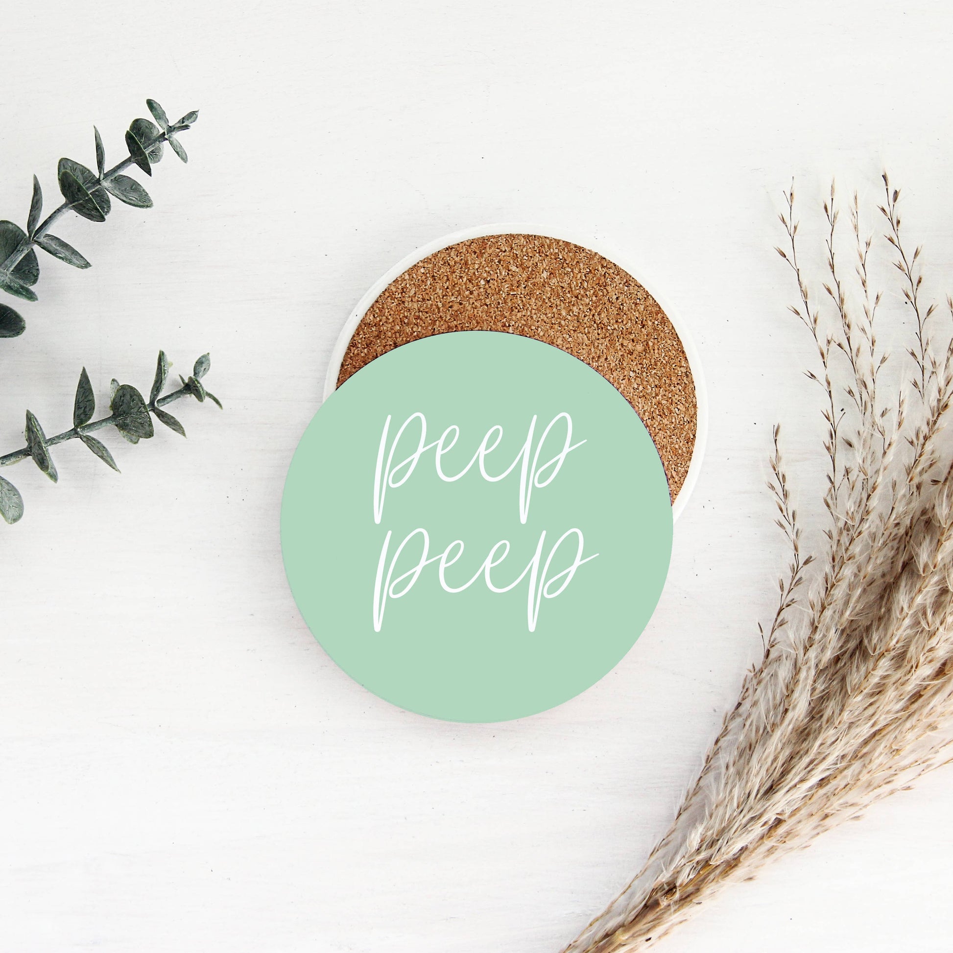 Whether you're hosting an Easter Dinner or Spring Brunch, these are the perfect touch! Purchase plastic stands to display these as decorative accents on a tiered tray, shelf or countertop! Versatile purchase to use and sell as both! USA made and doubles as decor Ceramic Coasters, with Cork back to prevent surface scratches. UV Printing (not vinyl), which makes it permanent! 4" Rounds Designed by Gia Roma + found no where else! We do NOT put a coating/gloss oN these; have a matte finish. This allows ceramic to soak up water/condensation & prevents water dripping on/over coasters. easter table decor pastel coasters spring home decor ceramic coasters easter gift funny easter decor spring table setting bunny home decor easter entertaining pastel home accent easter hostess gift spring party decor easter pun decor