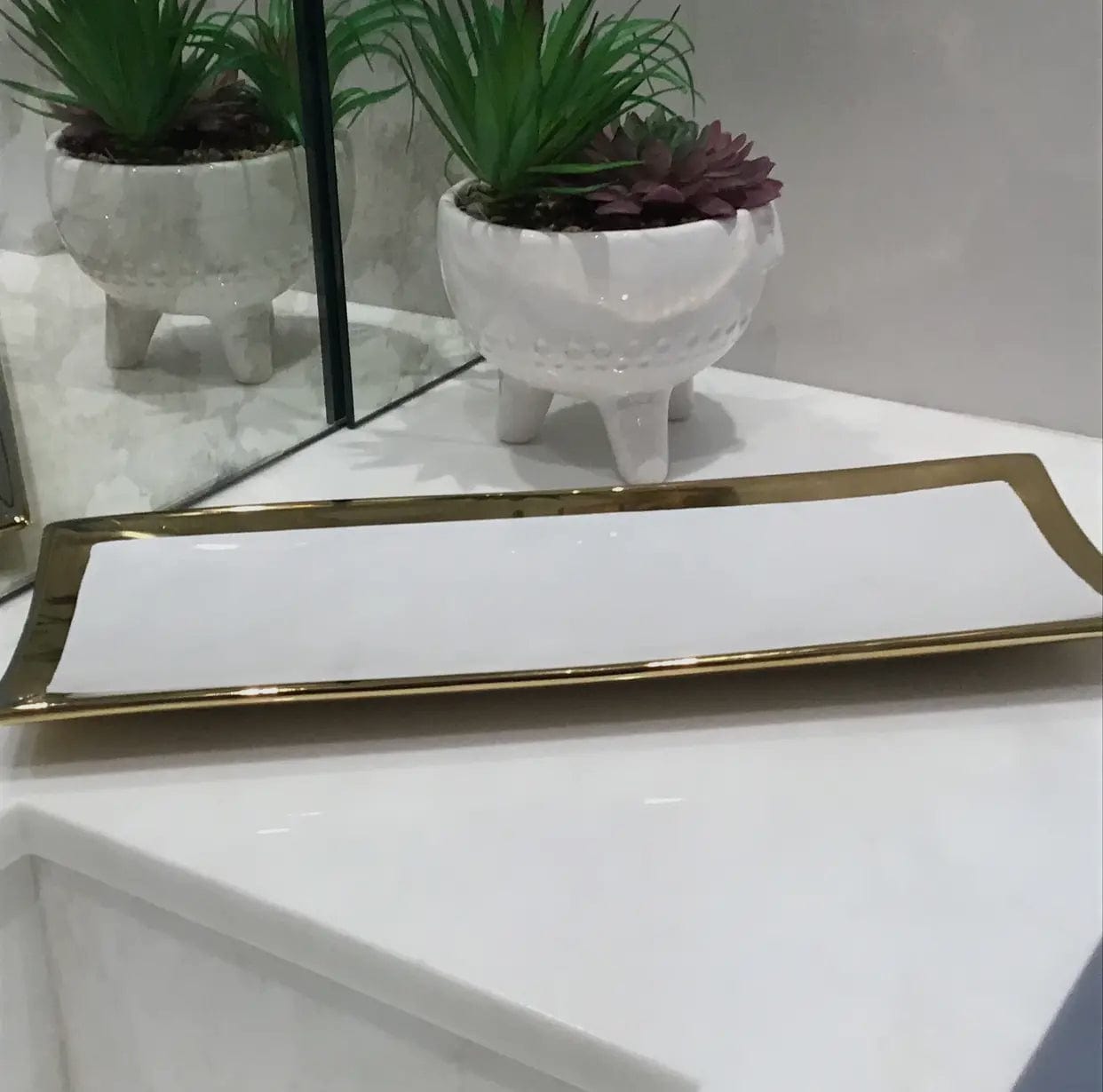 This white porcelain tray is artfully crafted by detailed designers whose attention to detail is evident in the classic design. It’s Rich color and design make it appropriate to be placed anywhere in the house. It can be placed on the entryway table to hold decorative items or car keys, in the vanity to hold soaps or air-fresheners, or in the kitchen as a serving dish. Have fun re-purposing this practical and versatile dish!